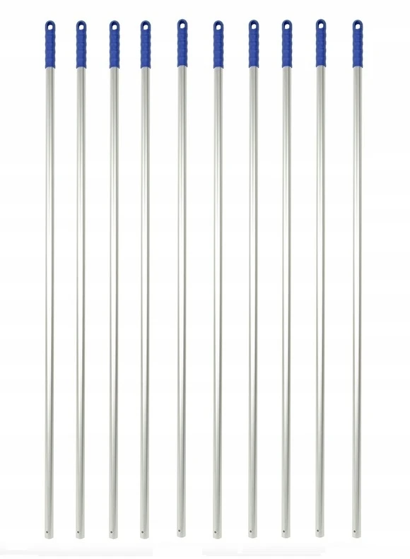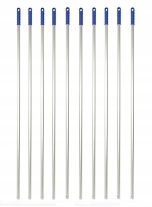 - Kij aluminiowy o długości 135 cm z rączką w kolorze niebieskim