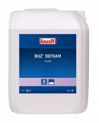 - Buzil Buz Defoam G478 to profesjonalny środek, który zapobiega tworzeniu się piany w zbiorniku brudnej wody we wszystkich typach urządzeń służących do czyszczenia maszynowego.