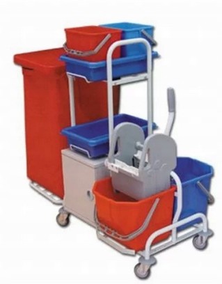 - Dwie kuwety o wymiarach 28cm x 43cm, przeznaczone do przewożenia wiaderek lub sprzętu do sprzątania