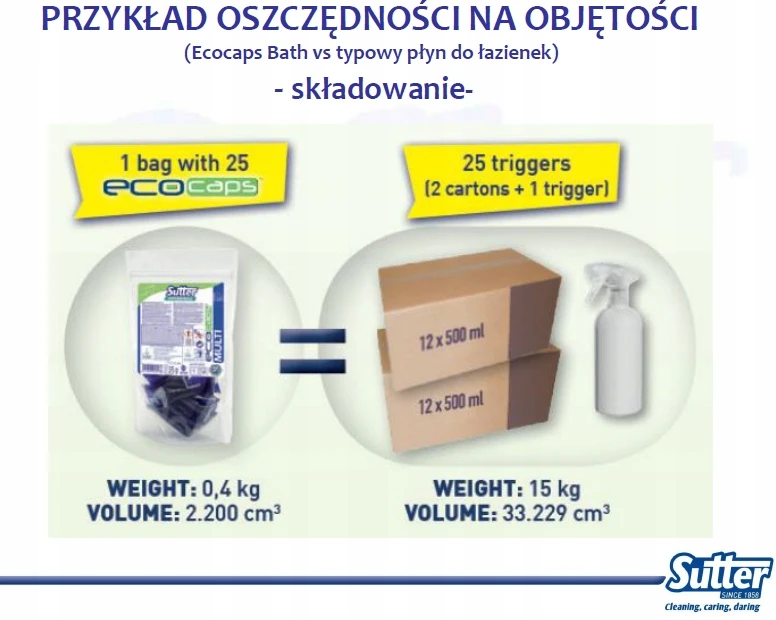 - ECOCAPS zapobiega przed przedozowaniem lub niewystarczającym zaaplikowaniem środka czyszczącego, przez co uzyskujemy maksymalny efekt pracy.