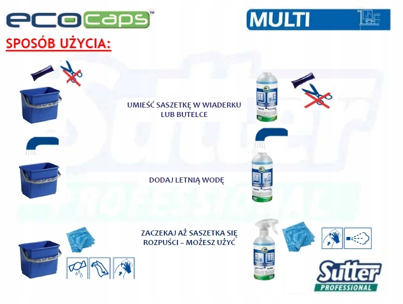 - Uniwersalny detergent MULTI ECOCAPS do wszystkich nowoczesnych powierzchni, luster, okien oraz drzwi, w formie rozpuszczalnych w wodzie kapsułek.