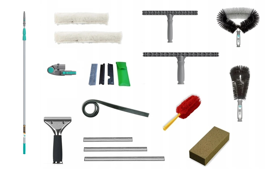 Prezentowany zestaw może służyć między innymi do mycia wszelkiego rodzaju powierzchni szklanych, jak również do czyszczenia kaloryferów oraz usuwania kurzu i pajęczyn z trudno dostępnych miejsc.