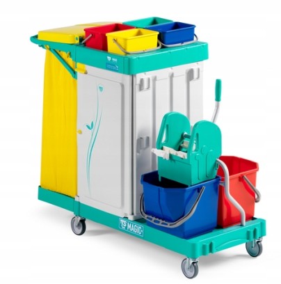 Wózek serwisowy MAGIC LINE 350 SAFTY przeznaczony jest do utrzymania czystości i idealnie sprawdzi się w obiektach takich jak: hotele, galerie, placówki medyczne, pomieszczenia biurowe itp. Modułowe komponenty pozwalają dopasować wózek do każdej potrzeby.