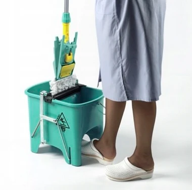 - Wyciskarka wyposażona została w pedał nożny oraz podwójne rolki, co umożliwia komfortowe oraz dokładne wykręcenie mopa.