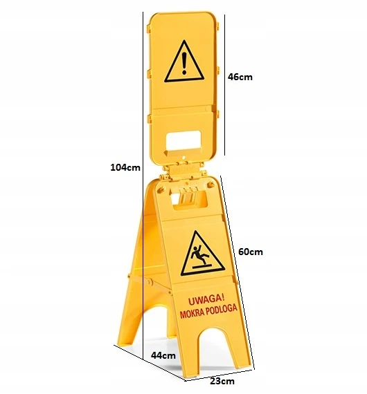 - Sygnalizator "UWAGA MOKRA PODŁOGA” jest przydatny w celu zwiększenia bezpieczeństwa.Tablica została wykonana z dobrej jakości tworzywa sztucznego, dzięki czemu jest wytrzymała oraz odporna na zarysowania.
