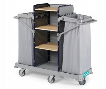 - Prezentowany wózek znakomicie sprawdza się w branży hotelarskiej lub medycznej, wykorzystywany jest do obsługi pokoi hotelowych i sal szpitalnych.